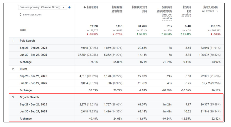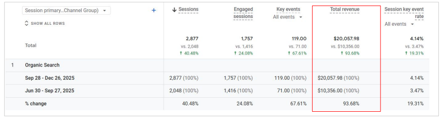 - Key Events (Conversions): Improved by 67.61% (119 vs 71)